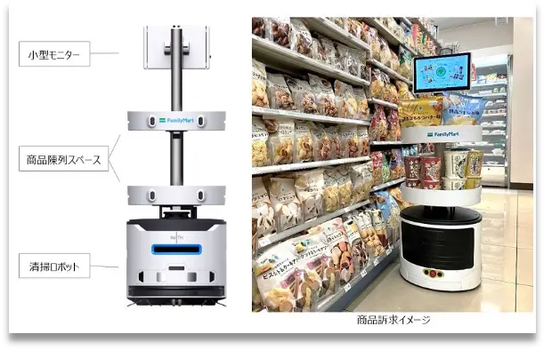 ファミリーマートに採用され、店舗における省力化の一環として導入を進めている多機能型床清掃ロボット(名称:ポム)など、コンビニエンスストアやスーパーマーケットなどの人の出入りが多い商業施設を中心に、日本の多くの企業様に導入いただいております。