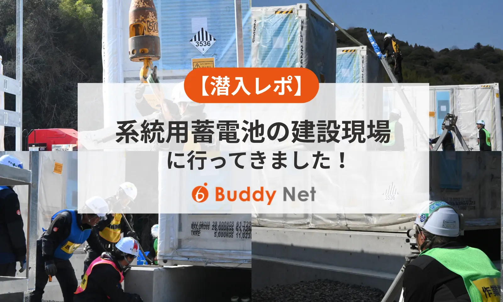 そんな中バディネットは、「すべてのモノが繋がるスマート社会」の実現に向け、通信建設工事を中心とした社会インフラ構築事業を展開しています。太陽光・風力発電所の建設や、今回レポートする蓄電所の建設を通じて、脱炭素社会の実現に貢献しています!